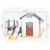 Поскольку набор предлагает множество вариантов игры, вы можете не волноваться, что ваш маленький ребёнок заскучает с ним. Малыш может наслаждаться большой горькой длиной 133,5 см, регулируемыми и чрезвычайно удобными качелями или тренировать свои спортивные навыки с баскетбольным кольцом. Более того, ваш ребенок может подниматься на горку прямо изнутри дома, ведь кто не мечтал о горке, спускающейся из окна его комнаты? Хотите максимально использовать игровое пространство? Без проблем. Боковой стол можно использовать не только для игры и творчества, но и для обучения.