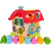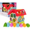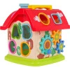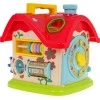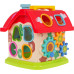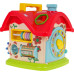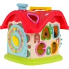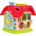 Красная крыша имеет отверстия для сортировки кубиков в форме геометрических фигур, которые помогают малышу различать цвета и формы. Дополнительно домик оснащен ручкой, что облегчает переноску игрушки.