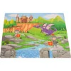 Пазлы можно использовать в качестве основы для строительных блоков, но они имеют другую функцию. Они двусторонние – с одной стороны волшебная картинка с замком, драконом и рыцарями, а с другой – увлекательная игра. В набор также входит кубик, а пешками могут быть деревянные фигурки из набора.