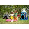 Автомобиль также оснащен дистанционным управлением 2,4G, что позволяет родителям контролировать поездку и мгновенно реагировать в случае опасности. Доступны 3 режима скорости и возможность регулировки клиренса под тип покрытия и рост ребенка.