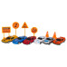 Трейлер содержит целых 6 пружинных автомобилей и разнообразные аксессуары, такие как дорожные знаки и столбики, разнообразящие веселье и позволяющие создавать собственные сцены. Прицеп можно легко отсоединить, образуя удобный чемодан с ручкой для переноски, а это значит, что ваш малыш может брать свою машинку буквально куда угодно.