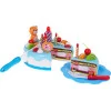 Набор для празднования дня рождения с тортом в голубых оттенках идеально подходит для детей от 3 лет, которые любят устраивать вечеринки и играть с декорированием. В набор входит торт, состоящий из 6 кусочков, которые можно комбинировать по собственному желанию и безопасно разрезать благодаря застежкам-липучкам. Многочисленные аксессуары, такие как свечи, фрукты, печенье и мишки, позволяют ребенку творчески украсить торт в соответствии с собственными идеями, делая каждую игру уникальной и увлекательной.