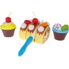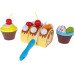 В набор входят 6 стандартных свечей и одна большая свеча, мигающая двумя цветами при нажатии кнопки, добавляя особый штрих к любой вечеринке. Дети могут «разрезать» торт с помощью безопасного ножа, входящего в комплект, а благодаря отверстиям в кусочках торта, они могут легко украсить его с помощью входящих в комплект украшений.