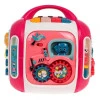 Каждая стенка бокса предлагает разные функции, которые развивают разные навыки ребенка. Музыкальная стенка знакомит малыша с миром звуков, предлагая звуки гитары, саксофона, барабана и мелодии. На телефонной стенке ребенок может играть со съемным телефоном, слушая звуки машин, животных и цифр.