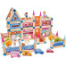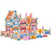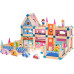 Набор деревянных, цветных и безопасных кубиков для детей от 3 лет. Пакет состоит из 278 элементов, которые, составляясь, образуют деревянный дом.