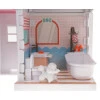 В набор также входят многочисленные аксессуары, такие как холодильник, швейная машинка, ноутбук и предметы одежды, позволяющие детям создавать собственные истории. Ступени, соединяющие этажи, придают реалистичности, а декоративные наклейки позволяют персонализировать помещение.