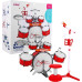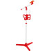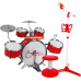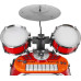 Набор включает в себя большую барабанную установку на 5 барабанов, синтезатор с диджейским пультом и микрофон на подставке. Чтобы ребенку было комфортно играть, добавлен стойкий табурет.