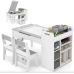 Описание Детский набор Costway Fantastik 3 в 1: стол, 2 стулья, белый мольберт.