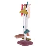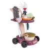 Тележка на колесиках с удобной ручкой облегчает перенос аксессуаров, а 2 полочки обеспечивают место для всех принадлежностей. Наибольшей приманкой набора является вертикальный пылесос, работающий от 3 батареек типа АА, которые нужно приобрести отдельно. Он издает реалистичные звуки уборки и может засасывать мелкие пенопластовые шарики, придавая игре подлинности.