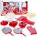 Много укомплектованный красный набор для шеф-повара станет отличным подарком для детей от 3 лет, которые любят готовить. В набор входит все, о чем может мечтать начинающий повар. Целых 14 реалистично исполненных элементов удовлетворят самых взыскательных юных поваров.