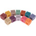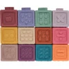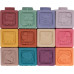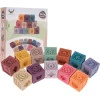 12 кубиков разной текстуры и цветов – каждый примерно 5,5 х 5,5 х 6,5 см,