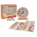 Ребенок может двигать часы, бросать кубики и устанавливать часы, а также учиться, сопоставляя соответствующие части головоломки. В набор также входит маркер, благодаря которому вы можете помечать конкретные часы на двусторонних карточках активности.
