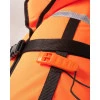Переднее отверстие, застегивающееся на пряжки, позволяет удобно одевать и снимать спасательный жилет. Благодаря стягивающим бортикам спасательный жилет можно затянуть так, чтобы он хорошо и надежно прилегал к телу и не сковывал движения. Оборудование включает светоотражающие элементы и предупредительный свисток .