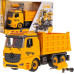 Самосвал оснащен передним приводом, а его прицеп можно поднимать, опускать и отсоединять. Кроме того, игрушка имеет интерактивные функции, такие как запуск, задний ход, звуковые сигналы, а также мерцающие фонари на крыше.
