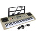 Над клавишами расположена панель с кнопками и четким электронным дисплеем. Дети могут использовать 100 тонов, 100 ритмов, аккорды, звуки барабанов и перкуссии, а также эффекты вибрации, эха и синхронизации. Также есть кнопка DEMO с 10 музыкальными фонами.
