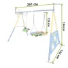 Каркас изготовлен из стальных труб с толщиной 1.4/1.0/0.8 мм, что обеспечивает прочность и надежность. Общие размеры конструкции – 261×142×184 см. Максимальная допустимая нагрузка – до 135 кг. Сидения из противоскользящего пластика (PC), веревки из нейлона длиной 126 см.
