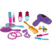 В набор входит бутафорский фен, зеркальце, расческа, щетка а также флаконы для духов, губная помада, браслеты, серьги, кольца и запонки. С таким укомплектованным набором дети будут чувствовать себя как в настоящем салоне красоты.