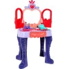 Туалетный столик с табуретом имеет большое зеркало, спрятанное за дверцей с рисунком сказочного замка. Чтобы открыть дверь, девушкам придется заклинать, а точнее поднести волшебную палочку к сердцу в верхней части игрушки. Затем появится зеркало, и когда вы закончите играть, вы сможете закрыть его снова, подняв палочку к сердцу во второй раз. Если у ребенка нет под рукой палочки из набора, воспользуйтесь его рукой, ведь механизм работает по принципу фотоэлемента.