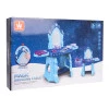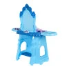 Интерактивный туалетный столик с функцией звука и света предназначен для детей от 3 лет. В набор входит туалетный столик и поддельная косметика и украшения. Туалетный столик имеет большое зеркало, а над ним кнопка в виде звезды, при нажатии на которую включаются звуковые и световые эффекты. На столешнице и полках по бокам туалетного столика есть углубление для косметики и украшений. Полки по бокам также открываются как туалетный столик, питаются от 2 батареек типа ААА 1,5 В (не входят в комплект).