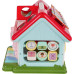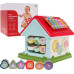В доме также есть сортировщик форм и тарелки, размещенные на крыше. Каждому из элементов можно подобрать подходящие отверстия, таким образом развивая ручные навыки и умение логически мыслить. Разноцветные тарелки знакомят детей с миром музыки, позволяя им играть простые мелодии.