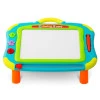 Прочный пластик, красивые яркие цвета, удобен и идеален для путешествий, 3 магнитных штампа в комплекте, мгновенно стирается ручка, панель для рисования в четырех цветах, 2в1 имеет ножки, которые можно легко снять, чтобы превратить стол в доску, эргономичная легкая ручка подходит для маленьких рук. Развитие мелкой моторики!