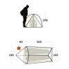 У цій же кімнаті ви знайдете практичні кишені для зберігання особистих речей і гачки для ліхтариків. У набір також входять алюмінієві кілочки, переносна сумка і ремонтний набір. Завдяки малій вазі намет ідеально підходить для тривалих подорожей. Завдяки вентиляційним отворам і матеріалу, стійкому до низьких температур, ви можете насолоджуватися природою більшу частину року!