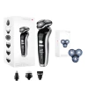 Светодиодный дисплей отображает процент заряда батареи. Напоминание о низком заряде батареи, напоминание об очистке контейнера. В комплекте: бритва medica+, триммер для волос в носу, щеточка для чистки, расческа для подстригания волос и кабель USB, 3 сменные насадки (7 мм, 5 мм, 3 мм).