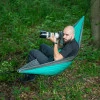 Гамак одноместный NILS CAMP NC9092 – зелено-серый предназначен для туризма, но также подходит для использования в саду.