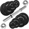 С помощью этого комплекса вы хорошо подготовитесь ко многим силовым упражнениям. Звездные замки гарантируют, что гири всегда крепко и надежно находятся на брусьях. Вы также избежите раздражительного дребезжания утяжелителей. Чтобы руки не скользили во время тренировки, точки хвата гантелей расположены поперечно-реберными. Каждая штанга имеет две неразрывные трапециевидные нити, самый безопасный способ крепления утяжелителей.