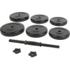 Набор содержит штангу эргономичной формы, 6 весовых пластин и весит в общей сложности 20 кг. Штанга имеет нескользящую ребристую поверхность ручки, чтобы вы могли сосредоточиться на поднятии тяжестей во время тренировки, а молнии-звезды фиксируют весовые пластины. Технические данные: размеры гантелей: примерно 45 x 2,5 см (Д x) вес гантелей: примерно 1 кг на штуку ручка: примерно 14,5 см (D) отягощенные пластины: примерно 20,7 x 3,7 см, из примерно 2 кг (Ø x В включая вес) отягощенные пластины: примерно 21,8 включая вес) отягощенные пластины: примерно 25,5 x 4,5 см, примерно 5 кг (Ø x В включая вес) Общий вес: примерно 20 кг Железный стержень с пластиковым покрытием и опорные пластины защиты звезд в пластиковом корпусе, наполненные песком и цементом Содержимое упаковки: 1 x2 набор замок 2 x 2 весовые пластины 2 x 2,5 кг весовые пластины 2 x 5 кг весовые пластины
