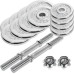 Технические данные: цвет веса: хромированная штанга: длина 35,5 см. Поверхность (рифленая ручка): диаметр 12 см. Вес: 10.5 см. Диаметр стержня: 30 мм (стандарт) Вес материала: чугун Содержимое упаковки: 8 х 5 кг х 2 (1,5 кг, длина 355 мм, Ø30 мм) 4 х резьбовые звездочки для крепления тяжестей 0,5 кг общий вес: 50 кг