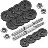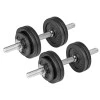 Гантели состоят из стальных грифов (хромированных, с резьбой) и крепких металлических дисков. Также они имеют рифленые ручки, которые предотвращают скольжение в руках пользователя во время тренировки.