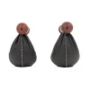 Гантели из массива дерева и сшитой вручную натуральной кожи.