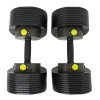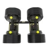 Благодаря простой и быстрой регулировке нагрузки гантели идеально подходят как мужчинам, так и женщинам. Чтобы изменить вес гантелей, нажмите кнопку (поочередно с одной и другой), которая переместит желтую ручку вверх. Затем, поворачивая ручку, выберите один из 10 уровней погрузки, нажмите желтые ручки с обеих сторон и поднимите гантели.