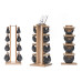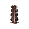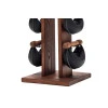 Стойка для гантелей SwingBell изготовлена из массива дерева и содержит восемь гантелей, полный комплект. В верхней части стойки есть держатель для планшета или смартфона – благодаря которому вы можете заниматься, просматривая обучающие видео или поставить официальный комплекс упражнений во время тренировки.