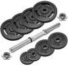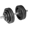 Гантель состоит из стального грифа (хромированного, с резьбой) и крепких металлических дисков. Также она имеет рифленые ручки, которые предотвращают скольжение в руках пользователя во время тренировки.