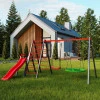 Описание Качели с гнездом аиста, стремянкой и горкой K-Sport KSOZ015DJZ - красно-серая