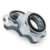Чтобы зафиксировать вес, прикрепите специальный замок и завинтите его до погрузки. Благодаря этому мы можем выполнять даже очень динамические упражнения, не опасаясь, что пластина соскользнет с грифа, создавая угрозу.