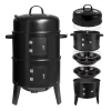 - КОПТИЛЬНЯ – круглая коптильня отлично подойдет для приготовления домашних нарезок и колбас, а также копченого сыра или рыбы. Для этого используйте как модули, так и крышку. Продукты копчения кладут на верхнюю решетку, а также можно подвесить под крышку, так как в комплекте есть крючки.