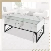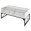 Верхняя часть стола разделена на две зоны: одна выполнена из искусственного мрамора, другая – из закаленного стекла. Закаленное стекло выдерживает нагрузку до 30 кг. Его трудно поцарапать, легко очистить, а благодаря защитным присоскам поверхность фиксируется крепко и надежно. Изысканность, не требующая компромиссов с безопасностью. Сочетание текстур создает уникальный контраст: глянец, глубина и светоотражение формируют объем даже в минималистическом интерьере. Четыре внутренние куба для хранения – идеальны для книг, журналов, пультов, декора. Просторная столешница 105×55см позволяет удобно сервировать напитки или расположить ноутбук. Внешне – элегантность, внутри – порядок. Благодаря водонепроницаемому покрытию, вы можете использовать стол даже для сервировки напитков без страха загрязнить поверхность.