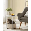 Столик с дополнительной корзиной для хранения вещей изготовлен из высококачественных материалов, таких как ДСП, сталь и полиэстер. Деревянная столешница стола способна выдержать нагрузку до 35 кг, что позволяет вам разместить на ней даже тяжелые предметы. Высококачественный материал столешницы придает столу эстетическую привлекательность и обеспечивает его долговечность.