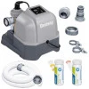 Для получения натурального хлора достаточно добавить поваренную соль в воду бассейна. Когда она проходит через генератор, образуется безвредный хлор и ионы, уничтожающие водоросли и бактерии. Производительность устройства составляет до 12 г хлора в час. Для работы необходим фильтрующий насос с производительностью не менее 1249 л/ч.