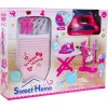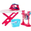 Основными частями набора являются раскладная гладильная доска и функциональный утюг. Кроме того, добавлены такие аксессуары, как корзина для белья, вешалка для одежды и набор вешалок, прищепок и картонных фиктивных платьев, которые можно повесить.