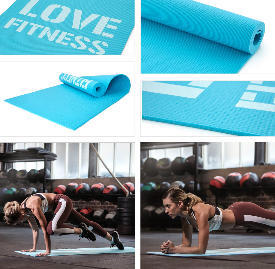 Коврик изготовлен из 100% ПВХ. Это прочный материал, не скользящий по полу во время выполнения упражнений, обеспечивающий комфортную тренировку и позволяющий полностью сосредоточиться на тренировке. Это также снижает риск получения травмы, так что вы получаете только пользу от занятий спортом.