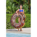 Круг изготовлен из очень прочного винила, а дополнительной защитой является клапан, препятствующий выходу воздуха. Идеальным выбором для праздника станет модель с принтом сладкого пончика с посыпкой.
