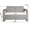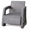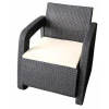Каркас мебели изготовлен из полипропилена с дополнительным порошковым покрытием, что обеспечивает устойчивость к влаге, УФ-лучам и деформациям. Усиленная конструкция выдерживает ежедневное использование на открытом воздухе, сохраняя первоначальный вид даже под действием солнца или дождя. Все элементы имеют скругленные края для безопасности.