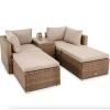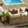 Комплект садовой мебели Alzano модульный, что означает, что его элементы могут выполнять различные функции в зависимости от обстановки. Это позволяет адаптировать мебель к вашим индивидуальным потребностям. Кресла и пуфики могут выполнять функцию четырех отдельных сидений или двух удобных диванов. Для создания дивана просто соедините кресло и пуф. Комплект также обеспечивает компактную сборку, позволяющую мебели занимать меньше места при хранении.