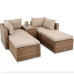 Создайте свою зону комфорта в саду или на террасе вместе с многофункциональным модульным набором садовой мебели Alzano. Модульный комплект мебели для террасы обеспечит вам незабываемые моменты отдыха и общения с близкими. Набор состоит из нескольких элементов, которые можно комбинировать для создания различных конфигураций: два кресла, два пуфа, которые могут объединиться в лежаки, и журнальный столик. Мебель из высококачественного техноротанга отличается прочностью и устойчивостью к погодным условиям.