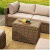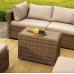 Аккуратный журнальный столик представляет собой идеальное дополнение к комфортному комплекту садовой мебели. Он обеспечивает удобное место для закусок, напитков, книг или телефона. Столешница из закаленного черного стекла является водонепроницаемой и легкой в уходе. Конструкция стола изготовлена из тех же материалов, что кресла и пуфы, что обеспечивает целостность и элегантность комплекта.