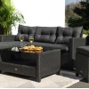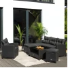 Прямоугольный журнальный столик с дополнительной полкой под столешницей – это практичный предмет мебели, позволяющий подавать закуски и напитки и удобно хранить аксессуары. Столешница из поливуда выглядит как натуральная древесина и полностью водостойкая. Его гладкая поверхность не впитывает грязь, поэтому ее легко поддерживать в чистоте. Конструкция стола выполнена из тех же материалов, что и другие элементы набора, благодаря чему набор смотрится очень цельно.